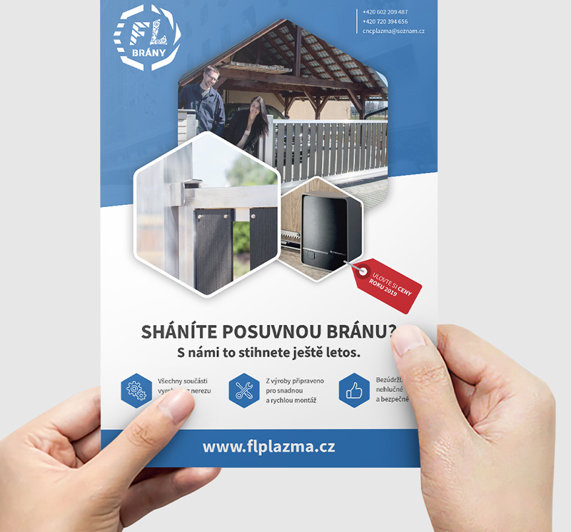 Majitelé značka FL BRÁNY, která se zabývá vývojem a prodejem kompletních systémů automatických posuvných bran, se rozhodli pro redesign stávajícího loga. Hlavním cílem bylo stávající logo maximálně zjednodušit, zároveň ovšem ponechat jeho hlavní atributy, jako je např. charakteristická CNC kresba v písmenech.